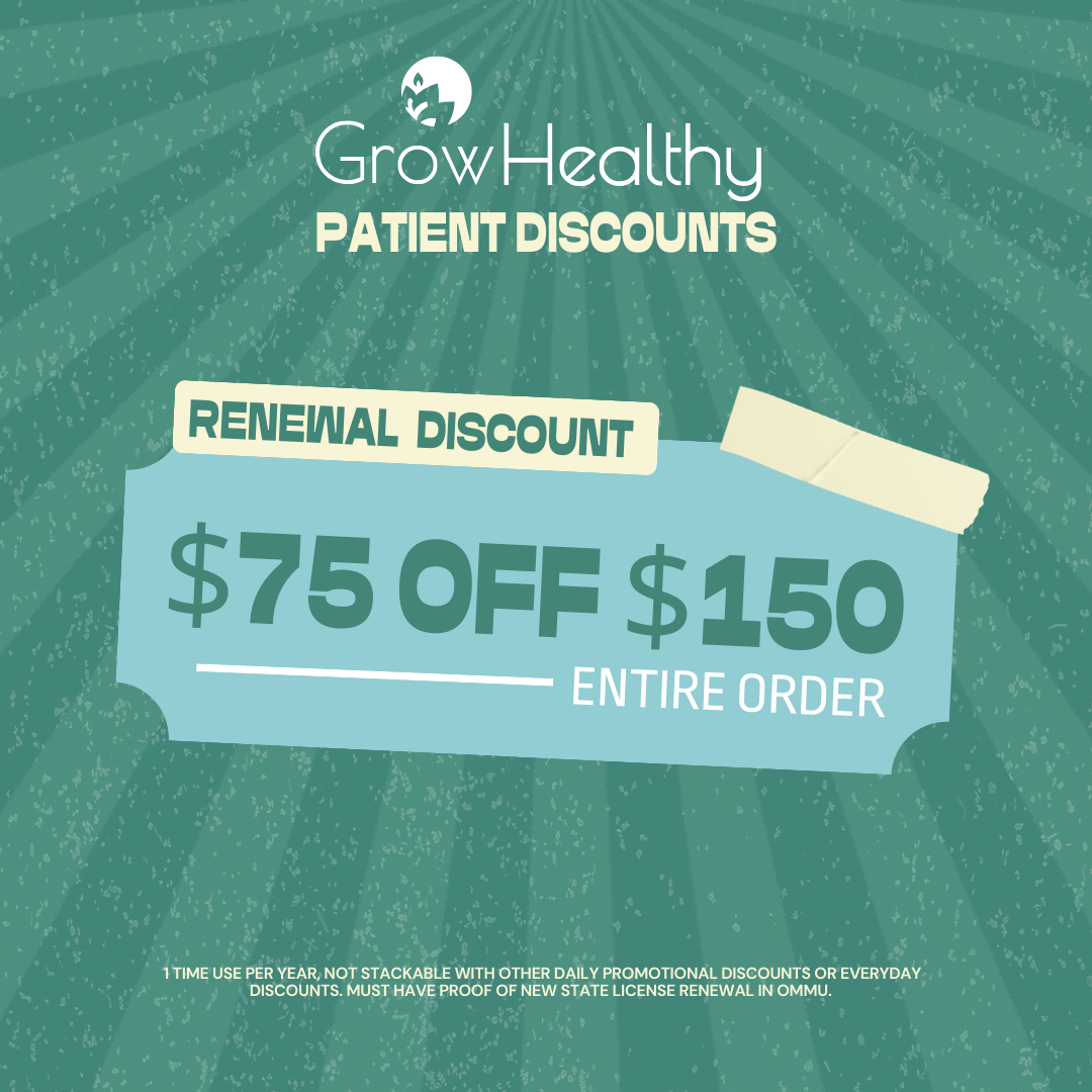 $75 Off $150 or more Renewal Discount is valid to be applied one time per annual Medical Marijuana Florida State License renewal period. Not stackable with daily or patient discounts, discount is based off MSRP pricing. Patient must present 1 valid form of proof, showing current renewal of Medical Marijuana Florida State License.